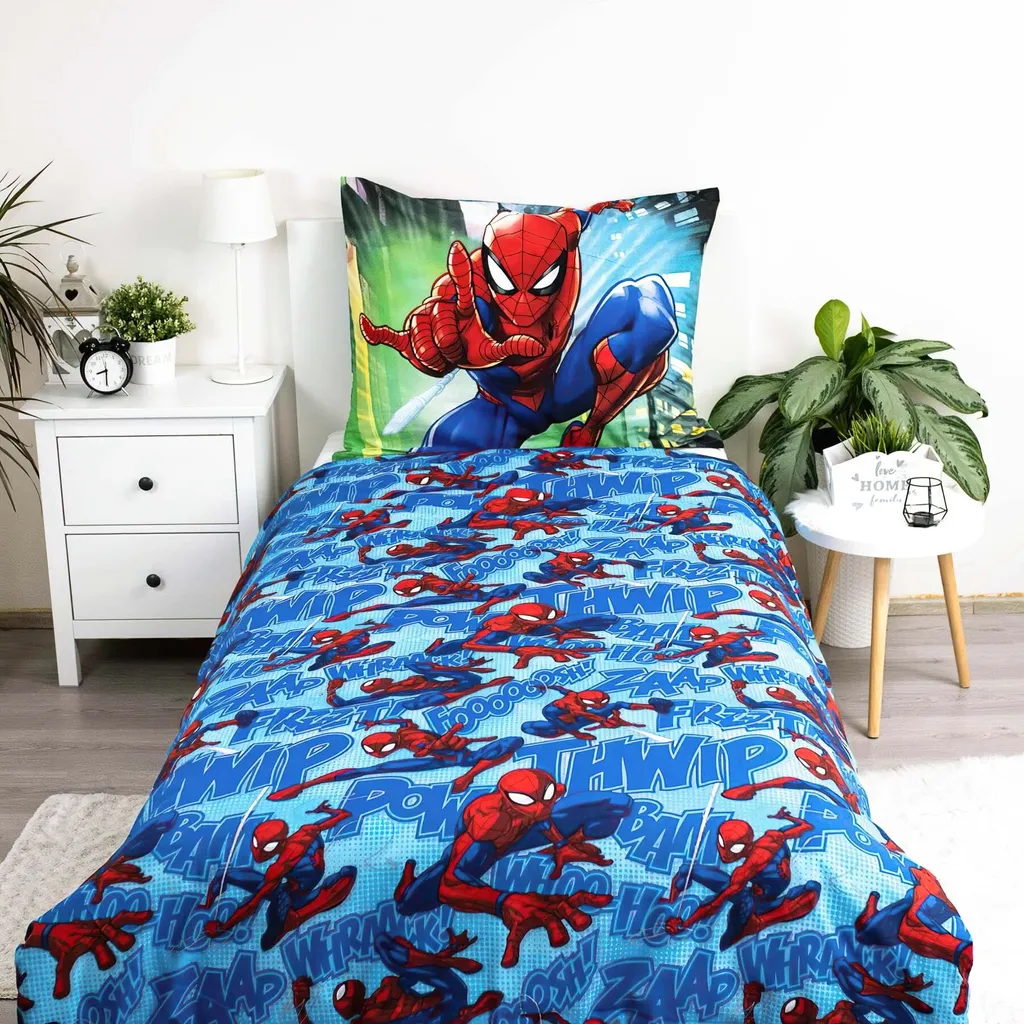 Этот пододеяльник с Человеком-пауком приятен для кожи и пропускает воздух, изготовлен из 100% хлопка, и создает здоровую и комфортную среду для сна круглый год. Детский комплект постельного белья с Человеком-пауком оснащен застежкой-молнией, что позволяет быстро и легко менять постельное белье.