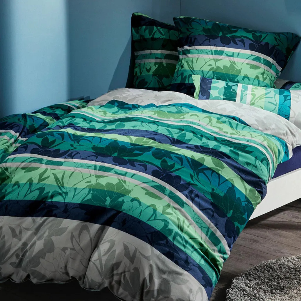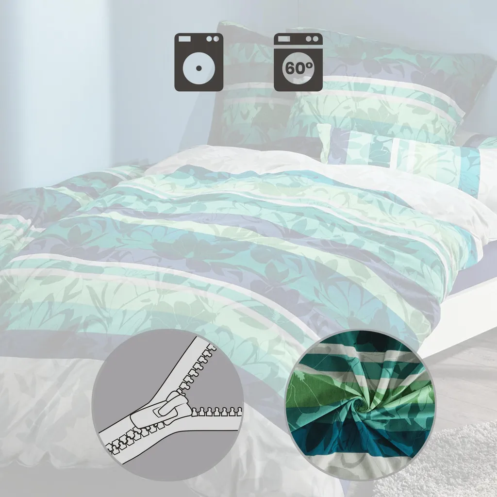 Односпальное постельное белье REDBEST из трикотажного полотна. Изящный цветочный узор оживляет фон и служит идеальной основой для современного полосатого дизайна. Наслаждайтесь невероятно мягким, тонким и мерцающим материалом круглый год. Ночь за ночью этот терморегулирующий материал будет баловать вас; он исключительно нежен к коже и прекрасно дышит. Благодаря своей естественной эластичности это постельное белье, не требующее особого ухода, идеально сохраняет форму. Не мнется и легко надевается благодаря молнии.