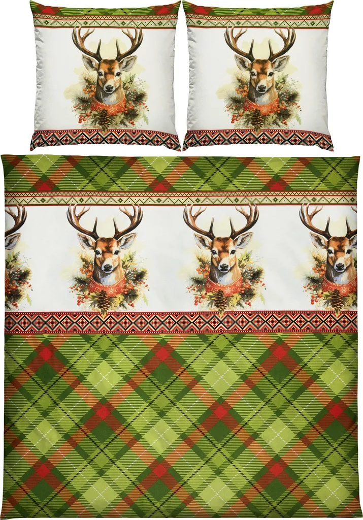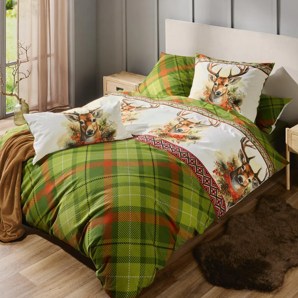 REDBEST Фланелевое постельное белье. Впечатляющие оленьи головы, кайма и классический ромбовидный узор создадут в вашей спальне уютную атмосферу. Двусторонняя наволочка. Мягкая бархатистая ткань с начесом дарит коже приятное тепло и располагает к уютному отдыху - даже холодными ночами. Это качество не только дышащее и терморегулирующее, но также простое в уходе и простое в надевании благодаря молнии.
