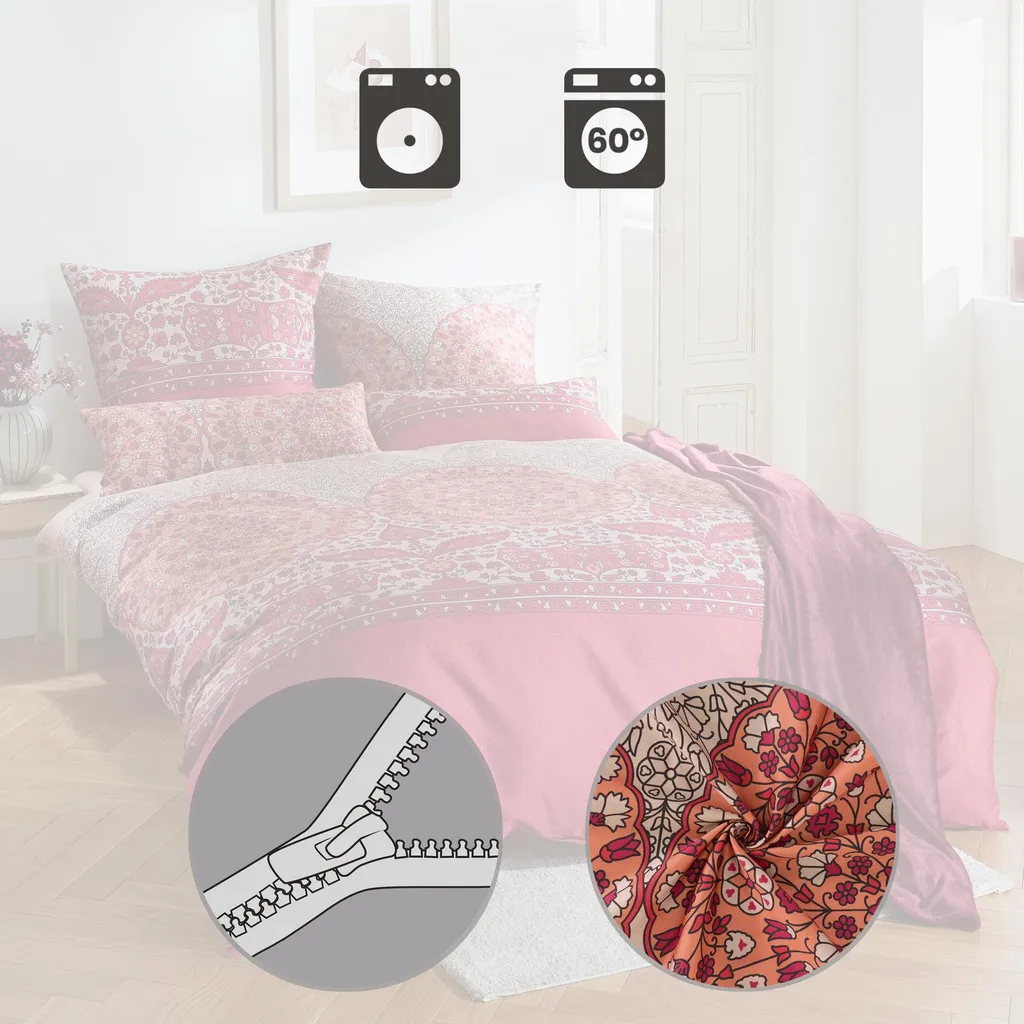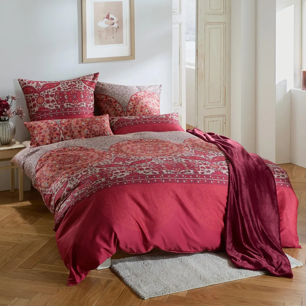 REDBEST Постельное белье из сатина. Изящные мандалы и узоры пейсли придадут вашему дому восточный колорит. В комплект входит двусторонняя наволочка. Благодаря высококачественной цифровой печати яркие цвета сохраняют яркость надолго. Роскошный материал с шелковистым блеском и гладкой поверхностью приятен на ощупь и излучает элегантность. Он регулирует влажность, поддерживает температуру и дышит. Легко надевать благодаря практичной молнии.