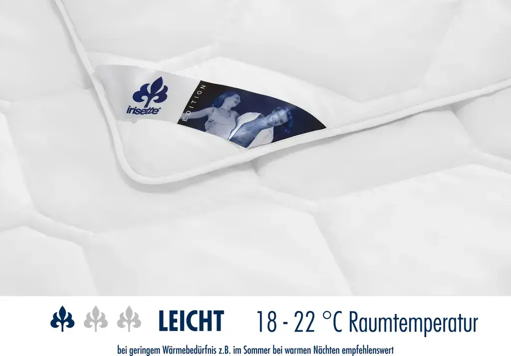 Влага быстро впитывается и выделяется в окружающий воздух. Это предотвращает накопление тепла и влаги. Это одеяло особенно полезно для аллергиков, поскольку его можно стирать при температуре до 95°C, обеспечивая здоровый и комфортный сон. Одеяло состоит из двух отдельных одеял (летнего и переходного), которые можно сшить вместе, чтобы создать зимнее. Четырехсезонный дизайн обеспечивает идеальный комфорт для сна круглый год. irisette - Экспертиза для вашего комфорта во время сна! Этот традиционный немецкий бренд гарантирует высокое качество продукции, обеспечивающей наилучшие условия для спокойного и здорового сна.