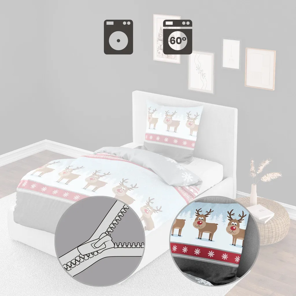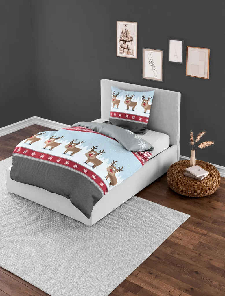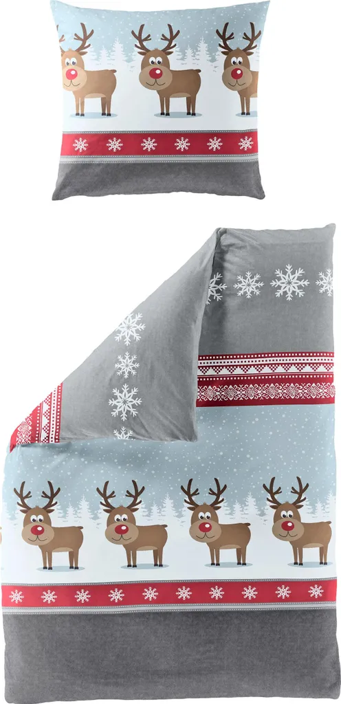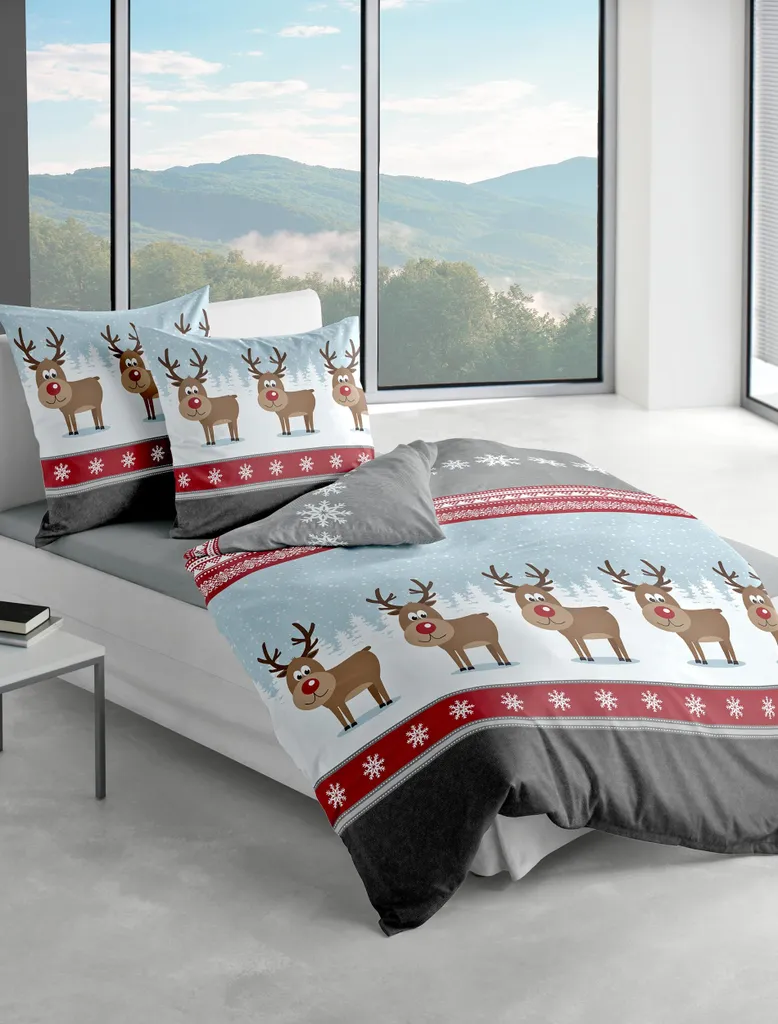 Фланелевое постельное белье Bierbaum. Милые олени в заснеженном лесу, ледяные кристаллы и узорчатый бордюр сделают ваше спальное место особенно уютным. Вам понравится уютно укутаться в эту мягкую ткань. Бархатистая, мягкая, ворсистая поверхность нежно ласкает кожу и окутывает приятным теплом. Настоящее наслаждение в холодное время года. Дышащее и терморегулирующее. Быстро и легко доступно благодаря практичной молнии.