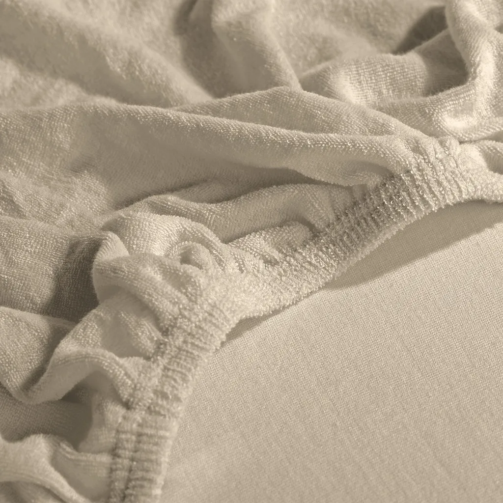 Erwin Müller Простыня на резинке Terry Stretch Füssen. Плотная, приятная на ощупь, прочная ткань проста в уходе, не мнется, сохраняет форму и эластичность. Прошитые углы и резинка по всему периметру обеспечивают идеальную посадку без складок. Специальный состав материала обеспечивает отличную посадку, а спальная поверхность, соприкасающаяся с телом, полностью изготовлена из чистого хлопка. Пожалуйста, измерьте высоту вашего матраса. Эта простыня на резинке подходит для матрасов высотой до 20 см.