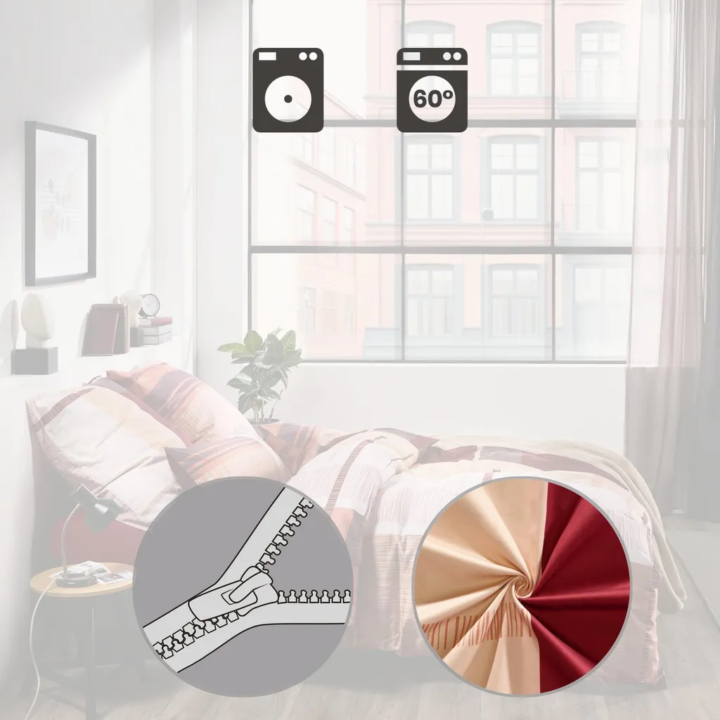 REDBEST Постельное белье из сатина. Современный дизайн и расцветка, это постельное белье украшено красивым графическим узором. Оно добавит изысканности вашей спальне. Двусторонняя наволочка позволит разнообразить ваш отдых. Насладитесь гладкой, мягкой и эластичной тканью с характерным шелковистым блеском. Он не только терморегулирующий, дышащий и приятный для кожи, но также прост в уходе и легко надевается благодаря молнии.