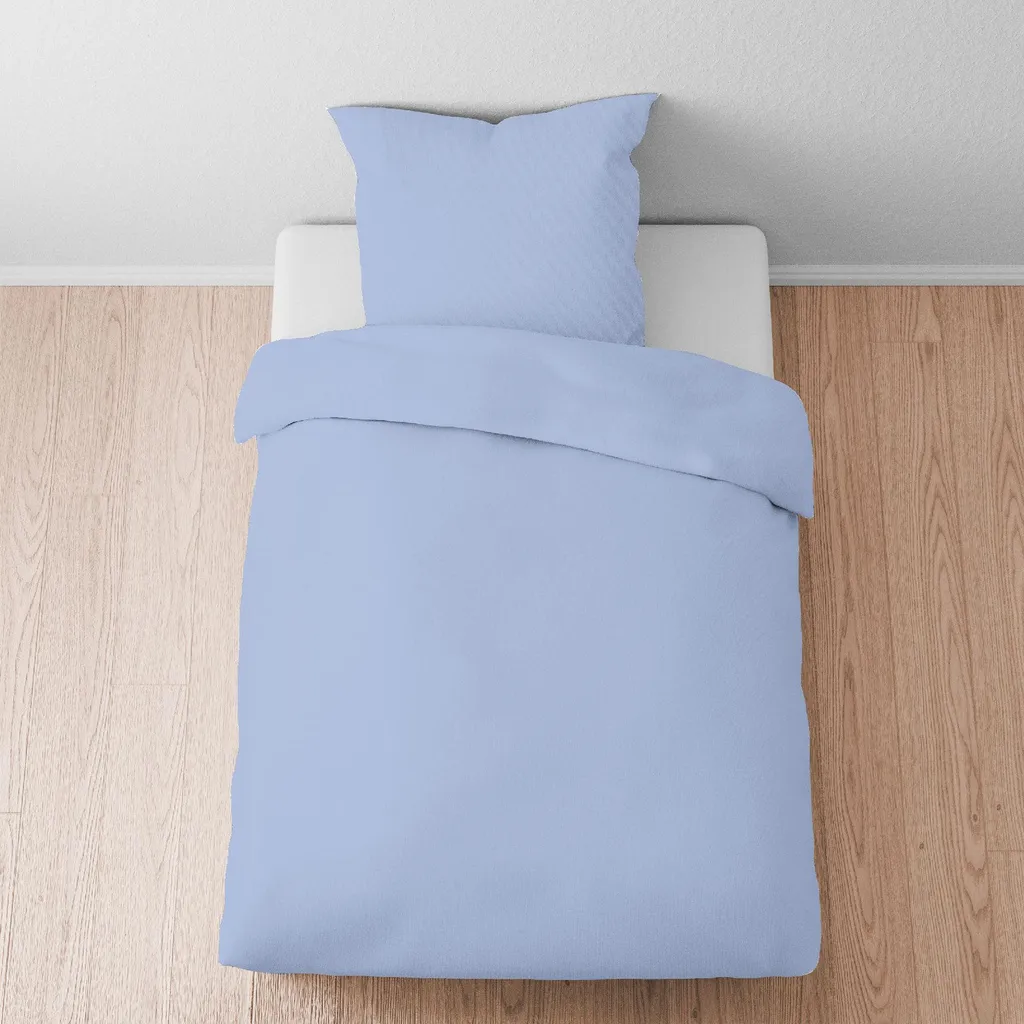 Свойства: 100% лиоцелл, ок. 120 г/м² Волокна лиоцелла изготовлены из натурального сырья - древесины. Приятны для кожи, регулируют влажность, устойчивы и долговечны. Застежка-молния. Хорошо впитывают влагу и удобны в носке. Уход: обычная стирка при 60 °C. Не отбеливать. Используйте мягкое моющее средство. Сушка в стиральной машине при низкой температуре (деликатный режим) / 1 точка. Гладить при высокой температуре (200 °C) / 3 точки. Размер: 155 x 220 см + наволочка 80 x 80 см. Дизайн/цвет: ледяной голубой. Узор: однотонный. Этот комплект состоит из одного пододеяльника и одной наволочки. Цвета могут отличаться из-за разных настроек экрана. Без других предметов, украшений, мебели/кровати, показанных на изображениях.