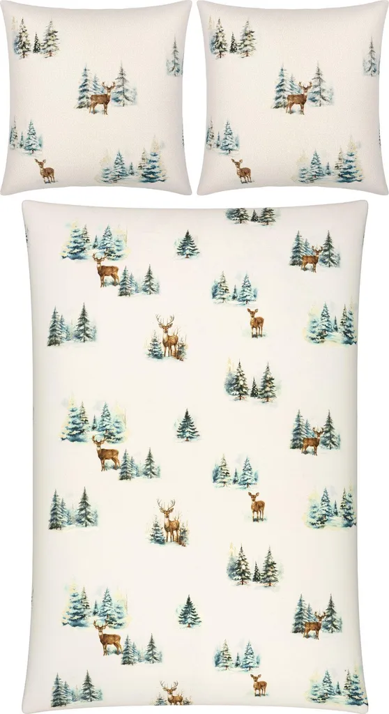 REDBEST Фланелевое постельное белье. Заснеженный лесной пейзаж с оленями и косулями привнесет зимнее волшебство в вашу спальню. Спите чудесно в этом уютном, теплом, нежном, бархатистом постельном белье с начесом. Оно терморегулирует, приятно для кожи и дышащее. Легко гладится и просто надевается благодаря практичной молнии.