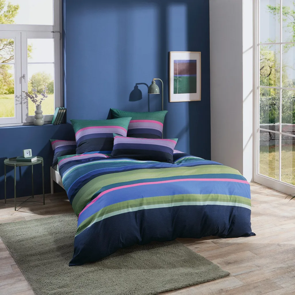 REDBEST Постельное белье из перкаля. Горизонтальные полосы разной ширины, некоторые с индивидуальным рисунком, в гармоничном сочетании цветов придадут вашей комнате современный вид. Гладкая, приятная на ощупь ткань обеспечит прекрасный сон. Она удивительно мягкая, эластичная, прочная и дышащая. Легко надевать благодаря молнии.