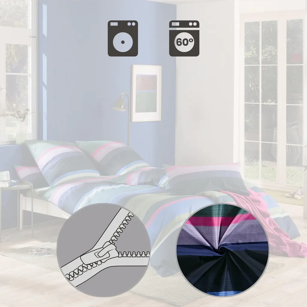 REDBEST Постельное белье из перкаля. Горизонтальные полосы разной ширины, некоторые с индивидуальным рисунком, в гармоничном сочетании цветов придадут вашей комнате современный вид. Гладкая, приятная на ощупь ткань обеспечит прекрасный ночной сон. Она удивительно мягкая, эластичная, прочная и дышащая. Легко надевается благодаря молнии.