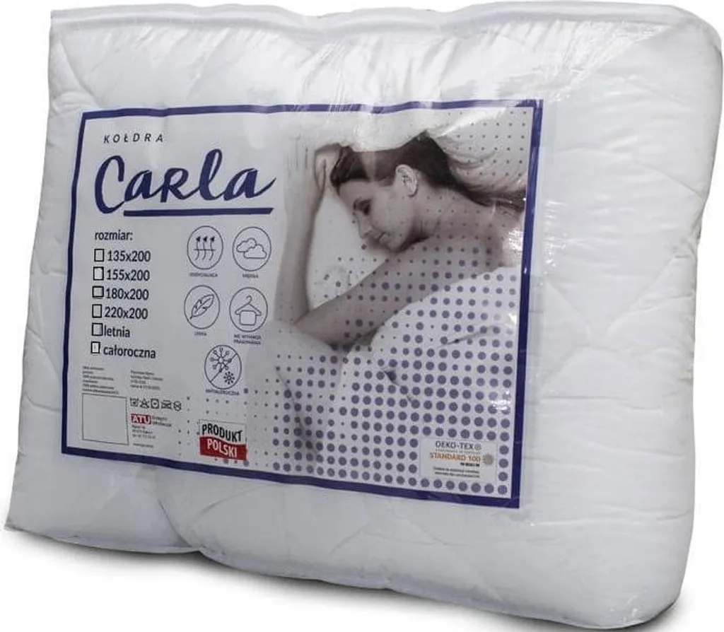 CARLA - это линейка высококачественных одеял и подушек для взыскательных покупателей, которые ценят комфорт, удобство и классический стиль. В нашей коллекции представлены всесезонные, летние и зимние одеяла. Чехол изготовлен из нежной, мягкой микрофибры (100% полиэстер). Наполнитель - очень легкое силиконизированное полиэфирное волокно, которое придает одеялу пушистость. Благодаря передовым технологиям производства наполнителей наша продукция гипоаллергенна. Наши одеяла обеспечивают высочайший уровень комфорта во время сна и легко чистятся. Одеяла простеганы, поэтому не скатываются и не образуют катышков. Наши одеяла изготовлены из материалов высочайшего качества. Вся коллекция CARLA использует наполнитель высочайшего качества на рынке; мы не используем ПЭТ-бутылки. Наполнитель состоит из 100% чистого силиконизированного полиэстера, волокна которого не подвергаются переработке. Они дышащие и гипоаллергенные. Они очень мягкие и приятные на ощупь, обеспечивая высокий уровень комфорта во время сна. Кант по всей поверхности одеяла делает его более прочным и обеспечивает лучшую драпировку. Плотная стежка обеспечивает равномерное распределение наполнителя даже после многочисленных стирок. Параметры изделия: Одеяло Carla Quilt. Размер: 135 x 200 см. Ткань: полиэстер (микрофибра). Наполнитель: полиэстер с силиконовым покрытием. Температура стирки: до 40 градусов. Вес наполнителя: 1030 грамм. Цвет: белоснежный. Края: окантовка. Упаковано в чемодан с ручкой.