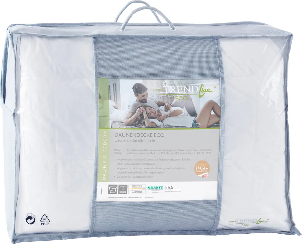 Пуховое одеяло BADENIA TRENDLINE Eco - фирменный продукт немецкого производителя Badenia Bettcomfort и символизирует надежное качество.