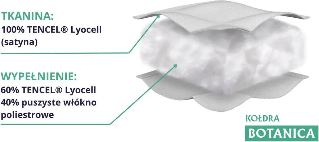 Одеяло BOTANICA изготовлено из мягкой и шелковистой гладкой атласной ткани, изготовленной из 100% целлюлозных волокон, полученных из древесины. Ткань обладает высокой устойчивостью к механическим повреждениям и в то же время отлично пропускает воздух.