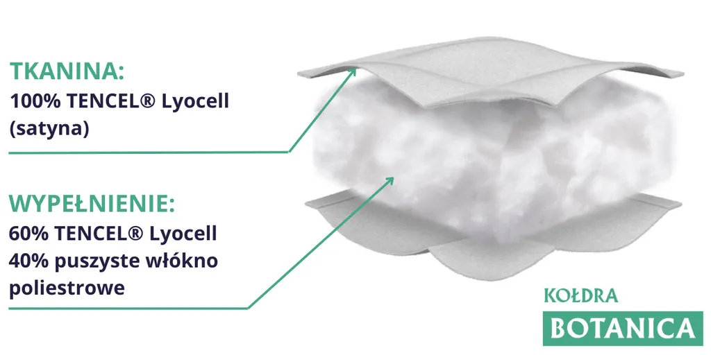 Одеяло BOTANICA имеет мягкую шелковистую атласную ткань, изготовленную из 100% целлюлозных волокон, полученных из древесины. Ткань обладает высокой устойчивостью к механическим повреждениям и в то же время отлично пропускает воздух.
