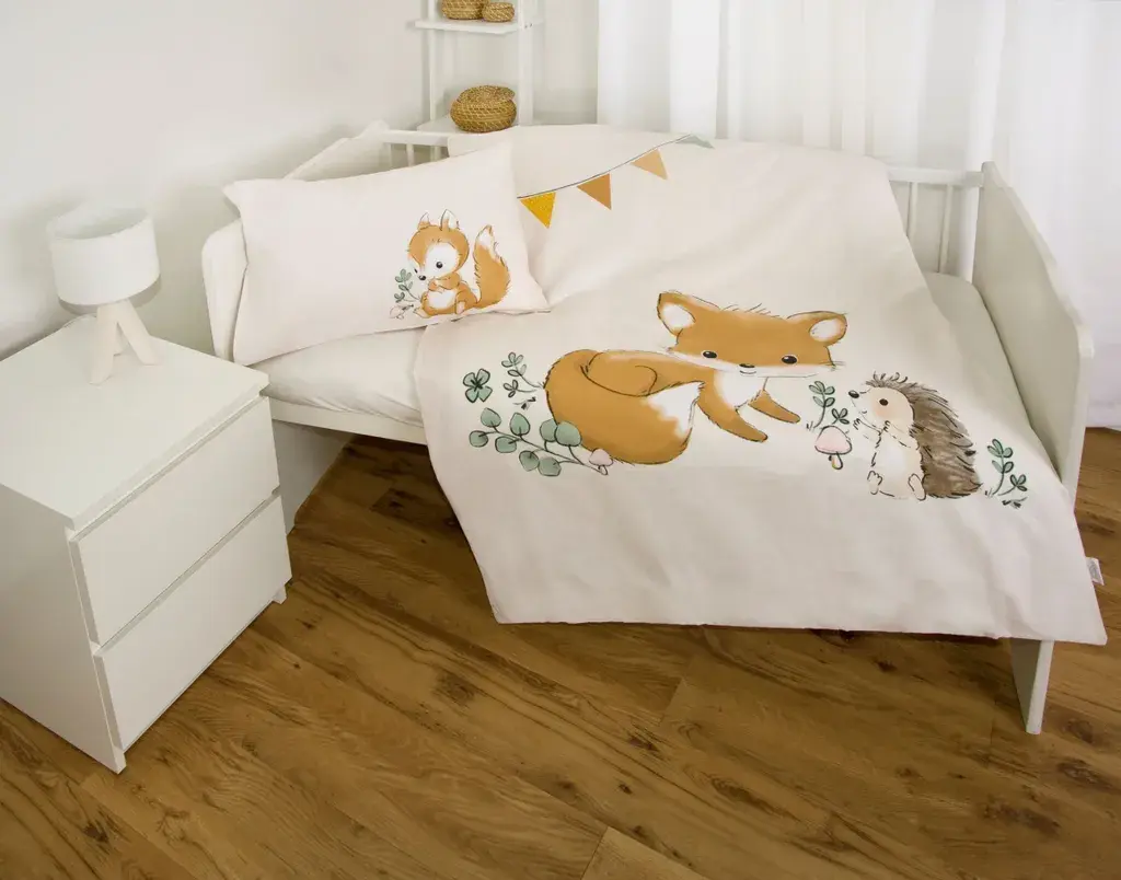 Мягкое постельное белье с популярным дизайном Forest Friends станет настоящей приманкой для глаз в любой детской комнате и идеально подойдет в качестве подарка. Благодаря адаптированному размеру это постельное белье для малышей идеально подходит для использования в дорожных кроватках, колыбельках и детских кроватках. Детское двустороннее постельное белье Herding Flannel Forest Friends. Это очаровательное постельное белье с милыми лесными животными и надписями очаровательно. Его можно выворачивать наизнанку, чтобы оно соответствовало любому настроению, благодаря изнанке в горошек по всей поверхности. Мягкий, бархатистый и уютно-теплый, он обеспечит вам фантастический сон. Он нежен к коже, терморегулирует и дышит. Легко надевать: наволочка застегивается на застежку, как в отеле, а пододеяльник - на пуговицы. Характеристики продукта: - Двустороннее постельное белье - с рисунком - с надписью - Качество: фланель - Пододеяльник с застежкой на пуговицы - Наволочка с застежкой в гостиничном стиле - Материал: 100% хлопок (BW)