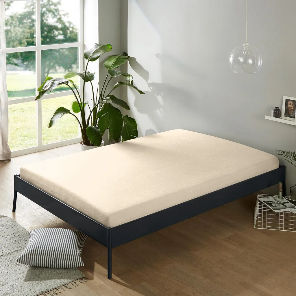 Erwin Müller Простыня на резинке Terry Stretch Füssen. Плотная и приятная для кожи прочная ткань проста в уходе, не мнется, сохраняет форму и эластичность. Благодаря прошитым углам и эластичной резинке по всему периметру, эта простыня обеспечивает идеальную посадку по фигуре. Специальный состав материала обеспечивает отличную посадку, а спальная поверхность, прилегающая к телу, полностью изготовлена из чистого хлопка. Пожалуйста, измерьте высоту вашего матраса. Эта простыня на резинке подходит для матрасов высотой до 20 см.
