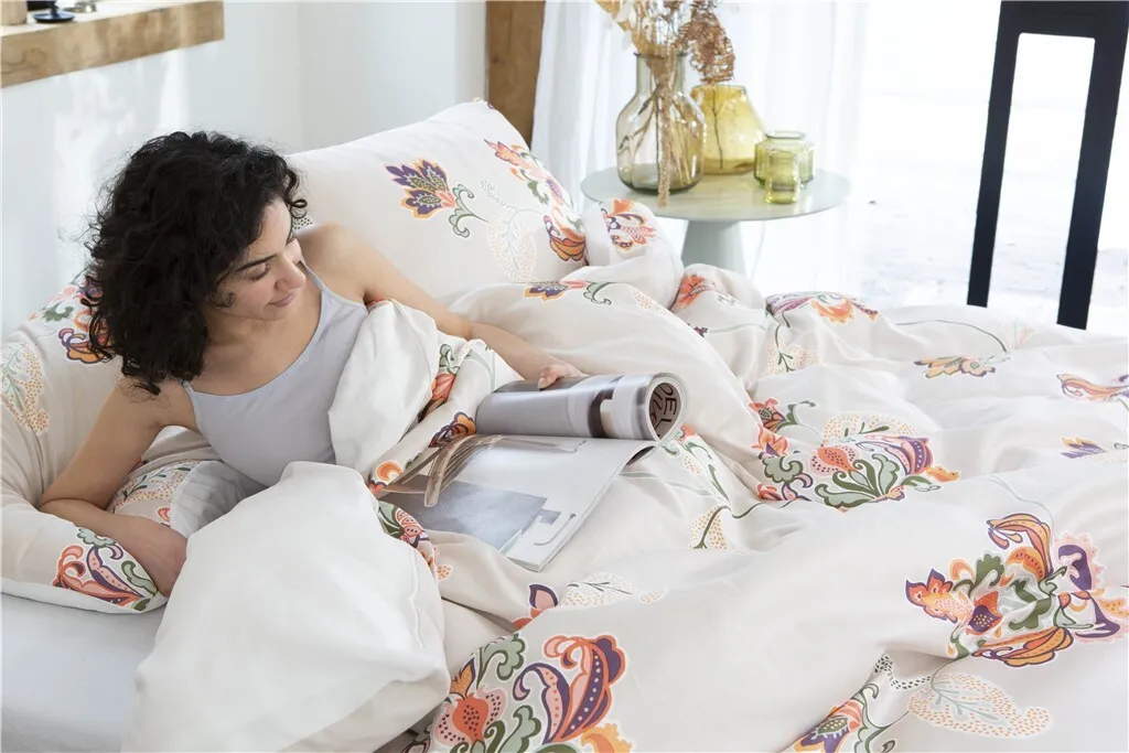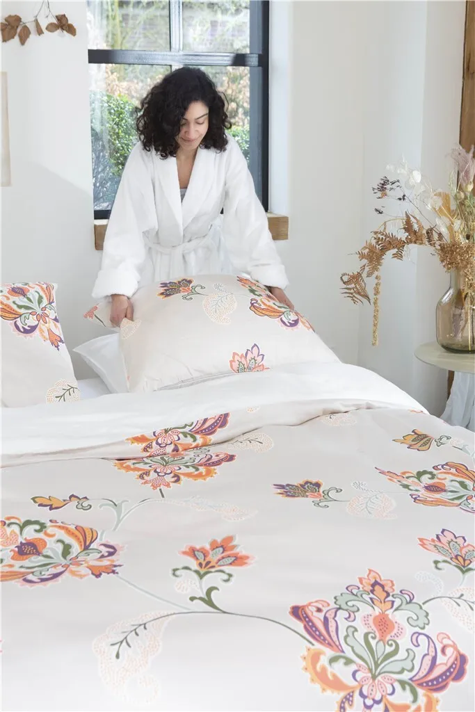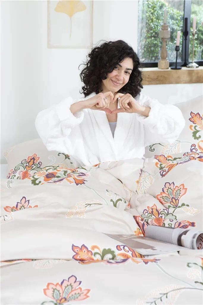 Романтичное двустороннее постельное белье Graceful Flowers украшено элегантным цветочным рисунком на фоне песочного цвета. Изнаночная сторона - успокаивающего белого цвета, что придает ему безмятежный вид. Постельное белье изготовлено из 100% хлопкового сатина и невероятно мягкое на ощупь. -Материал: 100% хлопковый сатин, Soft Touch, NL, подходит для одноместных и двухместных номеров, а также для семей с детьми. Размеры: 20 см, ширина стеганой вставки. DE Die Einzel- (135 und 155 cm) und doppelganger-Größen-Gleich-Gleiche-Sizes haben mit einen molni.