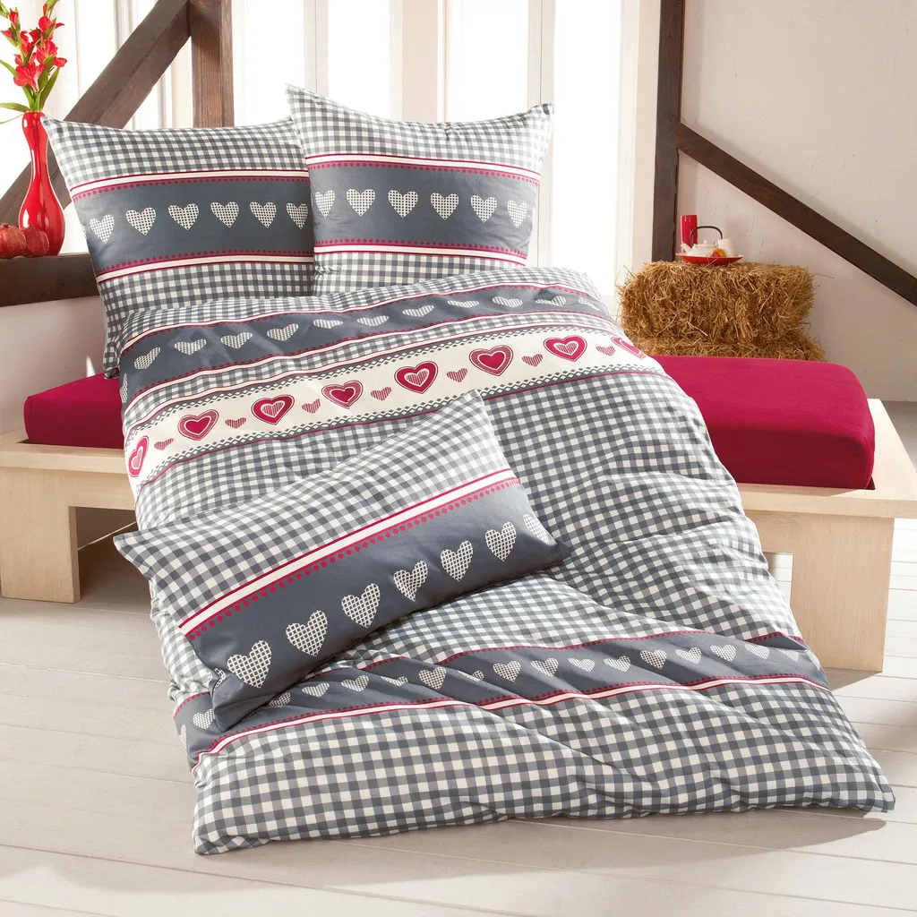 Erwin Müller Тонкая фланелевая наволочка. Сочетание сердечек и мелкого клетчатого узора создает чудесную уютную атмосферу. Она привнесет в ваш дом альпийское очарование и отразит современный дизайн интерьера. Побалуйте себя бархатистой, мягкой тканью с начесом. Мягкое и пушистое белье станет приятным подарком в холодное время года. Мягкая и приятная на ощупь. Удобно надевать и снимать благодаря практичной молнии.