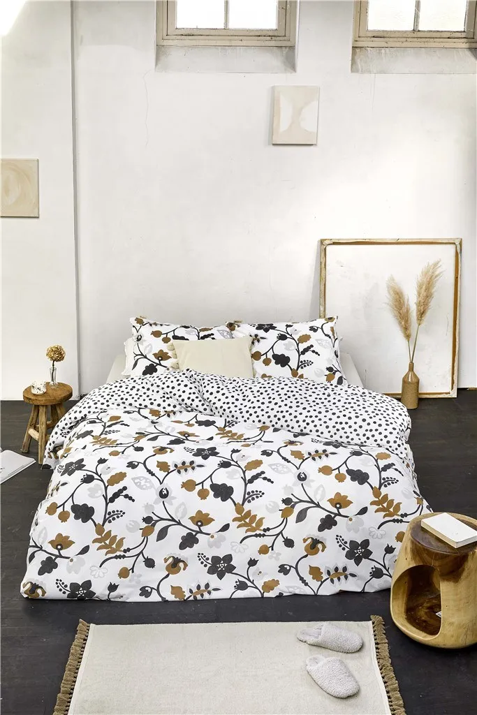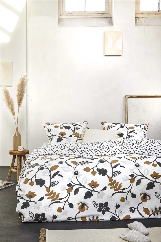 Двустороннее постельное белье Dots & Flowers украшено различными иллюстрированными цветами антрацитового, коньячного и светло-серого цветов. Точки на обратной стороне создают игривый эффект, добавляя романтику в вашу комнату. Постельное белье изготовлено из 100% хлопка, что делает его удивительно мягким на ощупь. -Материал: 100% хлопок, Soft Touch, NL, подходит для 1-местного, 2-местного и 2-местного размещения, в зависимости от размера кровати. DE Die Einzel- (135 и 155 см) и Doppelstärken-Größen 20 см über de ganzele Breitete.