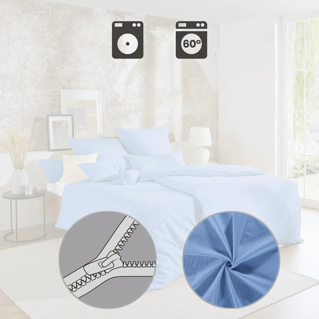 Наволочка из сирсакера премиум-класса Erwin Müller Wertingen. Любите простые дизайны? Тогда вам понравится это однотонное постельное белье в красивой цветовой гамме. Тонкая ткань из гребенной пряжи особенно воздушна и легка в теплое время года. Сирсакер отличается жатым эффектом. Эта популярная ткань не только приятна для кожи, дышащая и терморегулирующая, но и невероятно проста в уходе: не требует глажки, а благодаря молнии наволочку можно легко сменить.