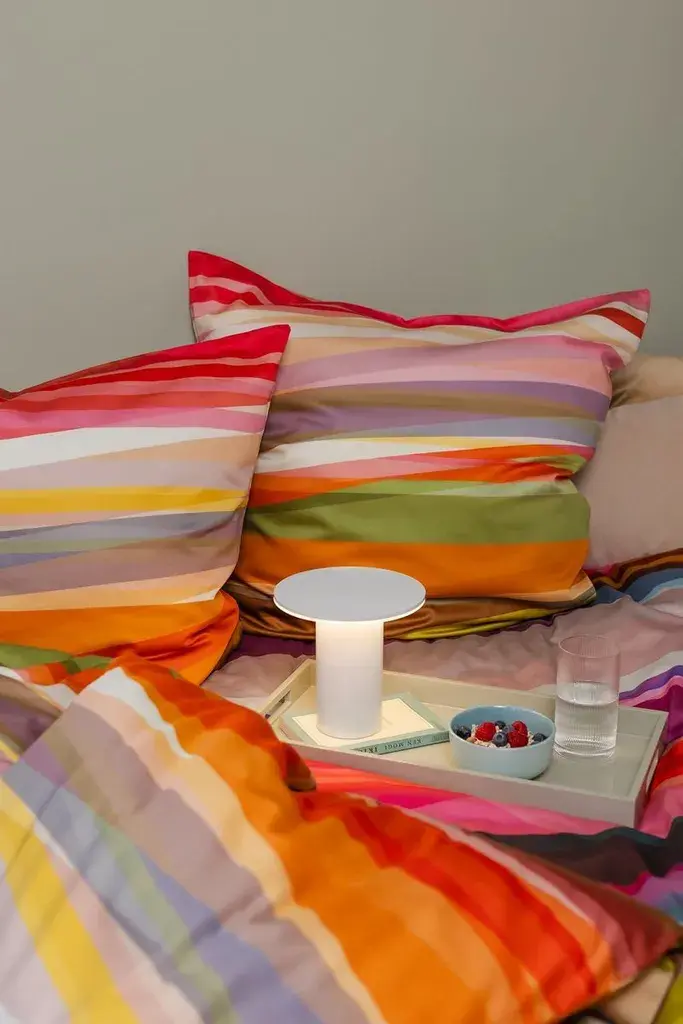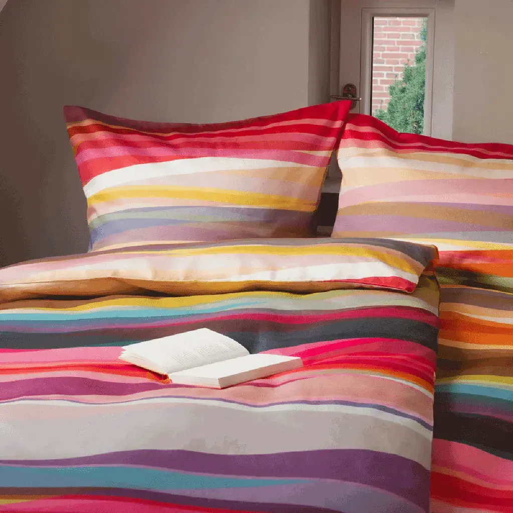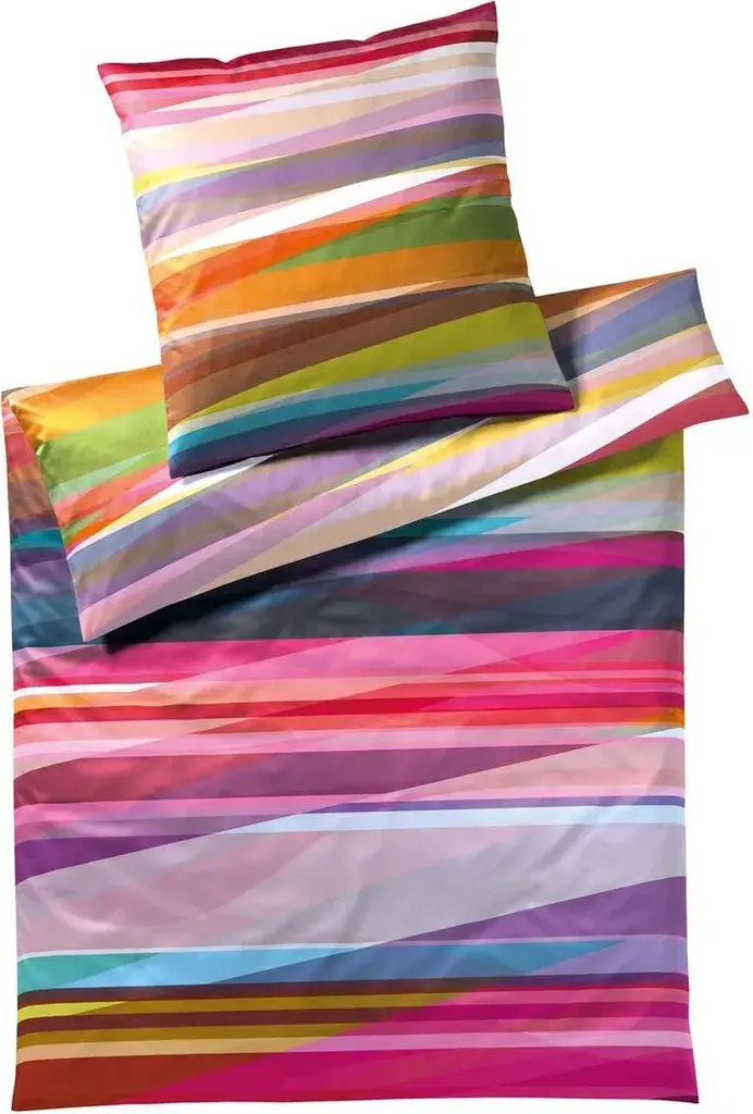 Этот комплект постельного белья, выполненный в ярких цветах и с многочисленными цветными полосками, украсит вашу спальню и гостевую комнату. Постельное белье изготовлено из мягкого мако-сатина - особого, очень чистого хлопка из Египта. Благодаря длинным шерстяным нитям он считается лучшим и самым качественным хлопком в мире. Он прочный и долговечный. Пододеяльник и наволочка оснащены молниями, что позволяет быстро и легко менять постельное белье. Желаем вам спокойного сна!