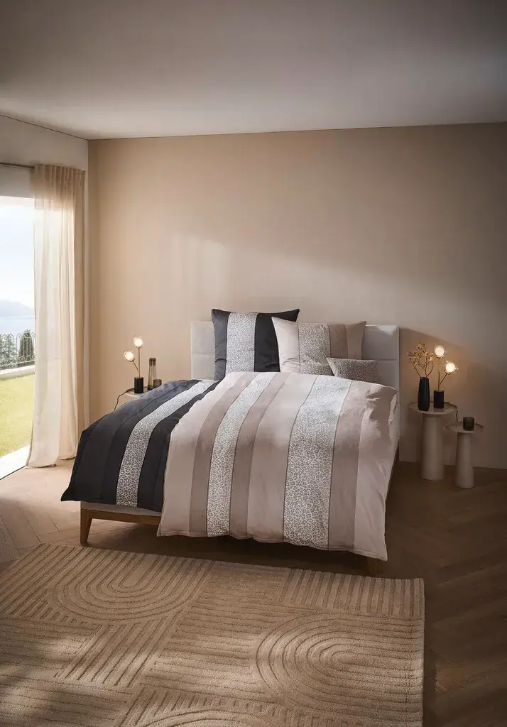 Постельное белье для самых высоких стандартов и комфорта Это постельное белье сочетает в себе качество и стиль, обеспечивая вам максимальный комфорт во время сна. Изысканный полосатый дизайн гармонично впишется в любой интерьер, добавив стильных акцентов. Будь то для вашей собственной спальни или в качестве подарка на особые случаи, это постельное белье всегда будет отличным выбором. Превратите свою спальню в оазис релаксации и подарите себе дополнительный комфорт.