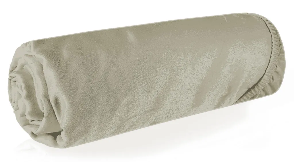 Эта большая бежевая атласная простыня с эластичным краем изготовлена из хлопкового сатина - натуральной ткани плотностью 125 г/м². Сатиновое плетение придает ей очень приятную на ощупь шелковистую поверхность, приятную к коже и имеющую легкий блеск.