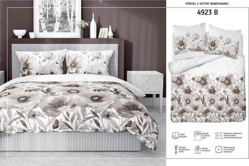 Постельное белье сатин 140х200 бежевые цветы Detexpol 5 816₽