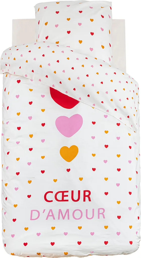Комплект поставки: Детский односпальный пододеяльник Cœur размером 140 x 200 см поставляется с наволочкой (65 x 65 см). Постельное белье изготовлено из хлопка с принтом в виде сердечек.
