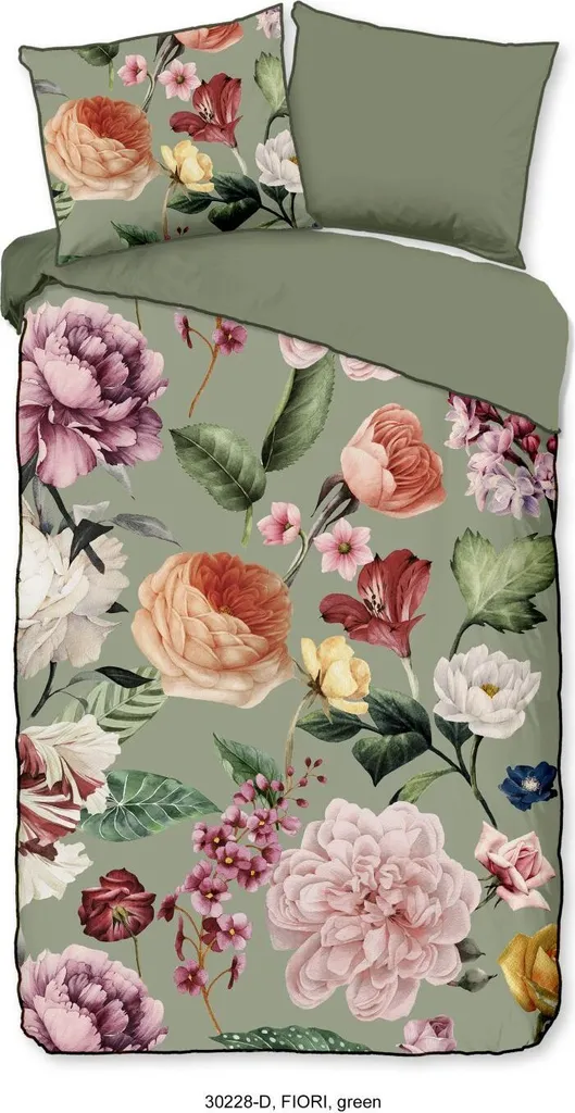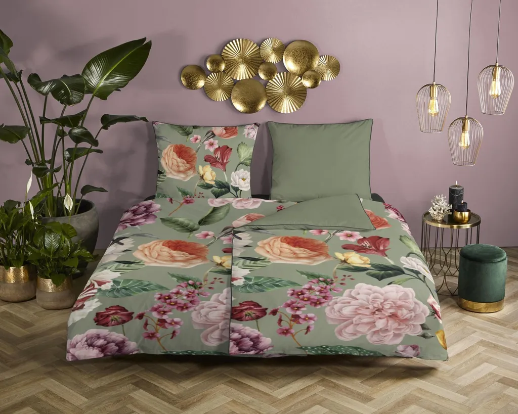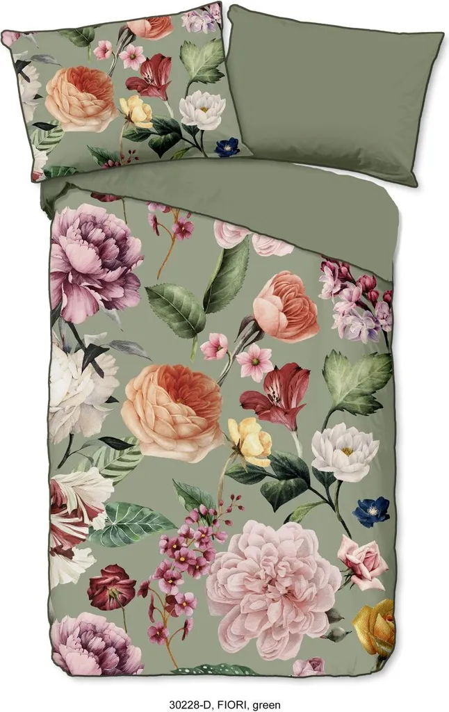 Постельное белье Descanso Mako Satin 135 x 200 см + 1 x 80 x 80 см Fiori Green