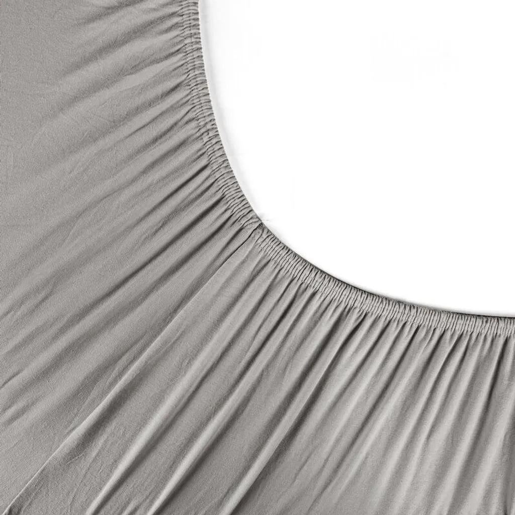 Простыня из джерси с эластичным подолом. Ширина: 90 см. Длина: 200 см. Цвет: серебристый. Плотность: 190 г/м². Состав: 95% хлопок, 5% эластан.