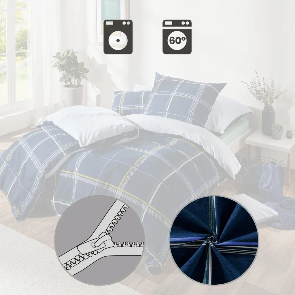 Erwin Müller Наволочка из высококачественной фланели с двусторонним дизайном. Два идеально сочетающихся друг с другом клетчатых узора придадут вашей спальне свежий вид. Просто переверните на другую сторону в зависимости от настроения. Мягкая ткань с начесом из тонкой гребенной пряжи - настоящее удовольствие. Она невероятно комфортна и окутает вас теплом и уютом в холодные зимние месяцы. Это качество не только дышащее, приятное для кожи и терморегулирующее, но также простое в уходе и простое в надевании благодаря молнии.