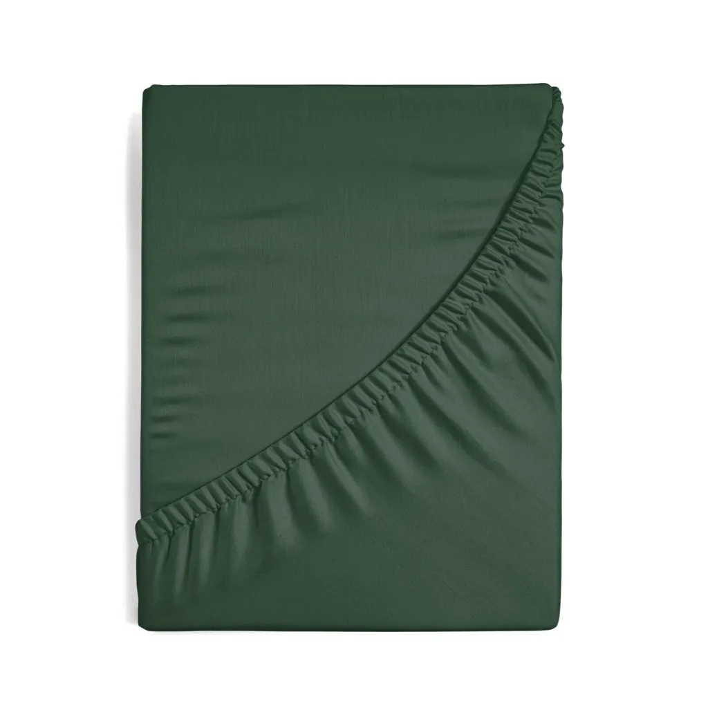 Эта большая простыня из темно-зеленого атласа с эластичным краем изготовлена из хлопкового сатина - натуральной ткани плотностью 125 г/м². Сатиновое плетение придает ей очень приятную на ощупь шелковистую поверхность, приятную к коже и имеющую легкий блеск.