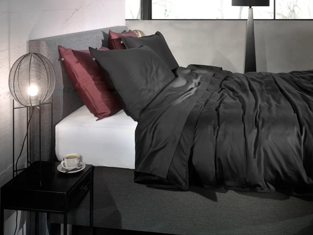 Zo!Home Mako Satin Satinado Bedding 200 Night Black Uni Night-Black 1 Duvet Cover 200x200cm + 2 Pillowcases 80x80cm