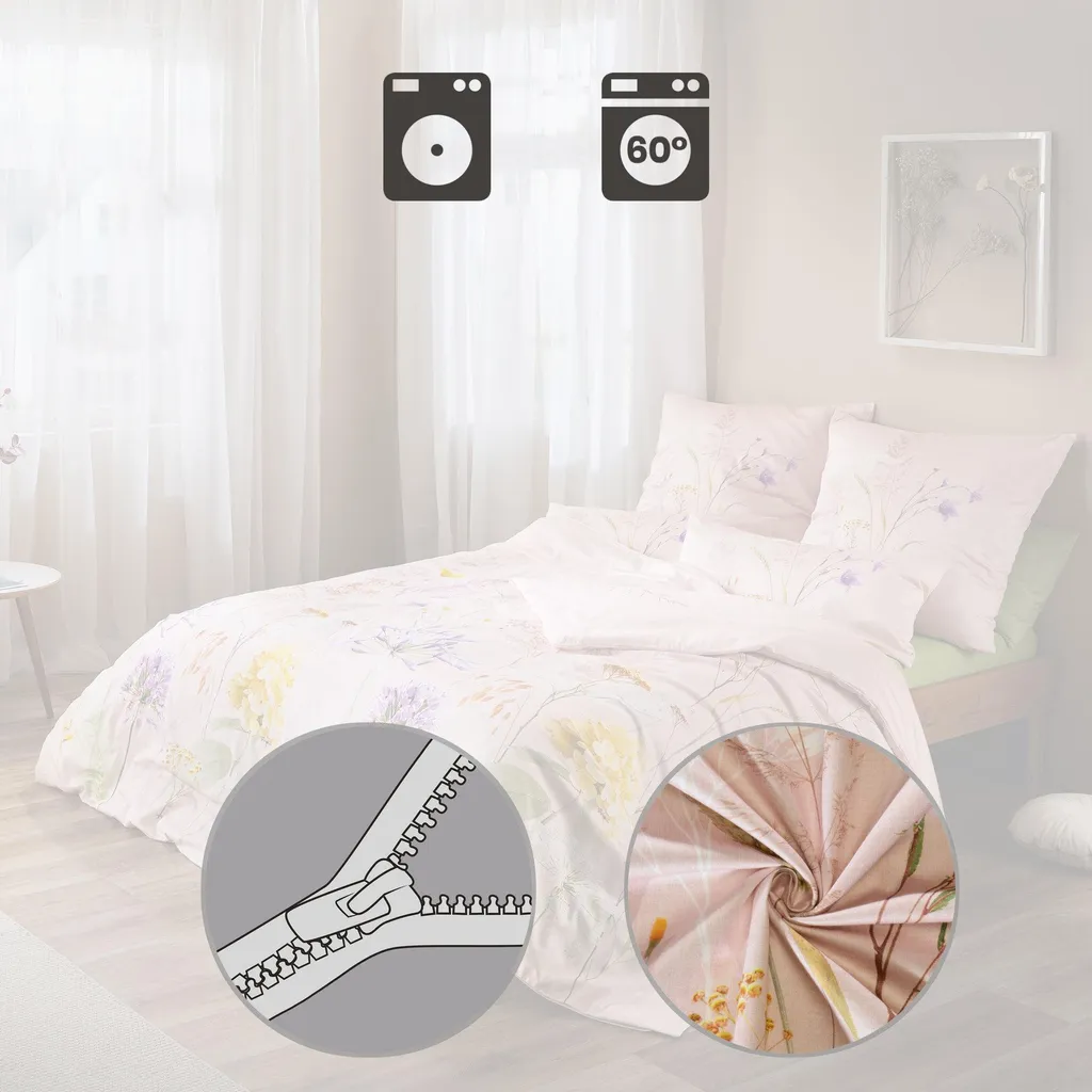 Наволочка Erwin Müller из мако-сатина. Полевые цветы и травы на изящном текстурированном фоне создадут в вашей спальне элегантную, естественную атмосферу. Высококачественная цифровая печать придает дизайну долговечную яркость красок. Насладитесь расслабляющим и восстанавливающим комфортом сна в этой шелковистой, мягкой, плотно сотканной и элегантно мерцающей ткани. Побалуйте себя чувственными ощущениями от этой ткани. Гладкая, эластичная ткань не только дышащая, приятная для кожи и терморегулирующая, но также долговечная и простая в уходе.