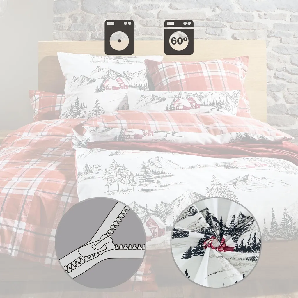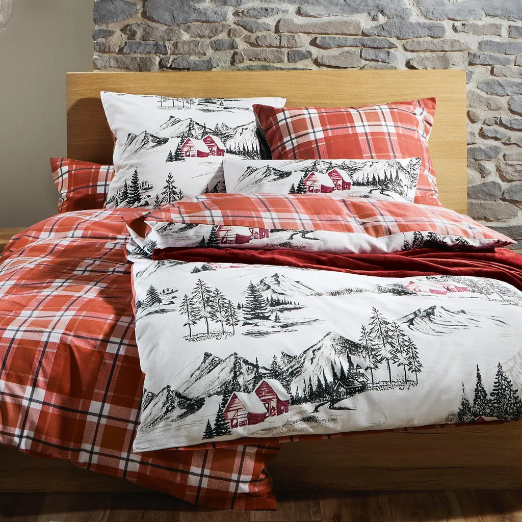 Наволочка из тонкой фланели Erwin Müller. Идиллический горный пейзаж с одной стороны, уютная клетка с другой - эта двусторонняя наволочка привнесет очаровательный альпийский колорит в вашу спальню. Плотная ткань с бережным расчесыванием и мягким ворсом обеспечивает непревзойденный уют. Эта ткань не только дышащая и терморегулирующая, но и приятная для кожи и простая в уходе. Быстро и легко надевается благодаря практичной молнии.