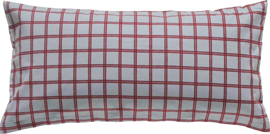 Наволочка 40x80 см, не двусторонняя - на ней изображен мелкий клетчатый рисунок с обеих сторон.