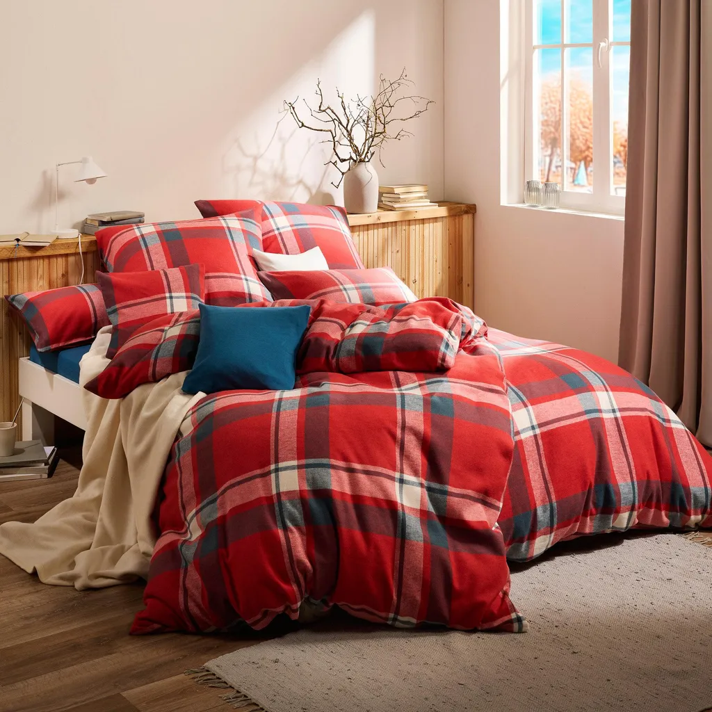 Наволочка из высококачественной фланели Erwin Müller. Яркий клетчатый узор в уютных тонах создаст в вашей спальне атмосферу уюта и комфорта, неподвластную времени. Наволочка изготовлена из окрашенных нитей, что обеспечивает длительную яркость цвета. Что может быть лучше, чем окунуться в бархатистое, мягкое и уютное тепло прохладными ночами? Ее нежная, пушистая поверхность создается путем особого процесса ворсования. Эта наволочка не только терморегулирует, приятна для кожи и дышит, но и долговечна, и за ней легко ухаживать. Застегивается на пуговицы.