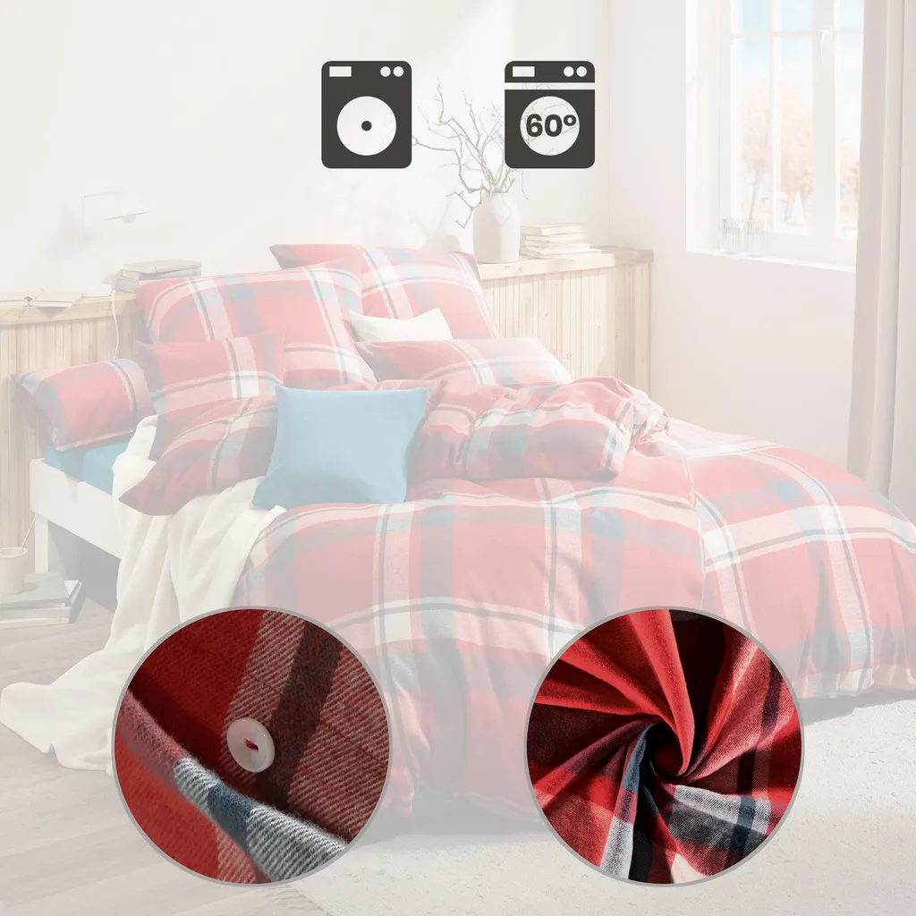 Наволочка из высококачественной фланели Erwin Müller. Яркий клетчатый узор в уютных тонах создаст в вашей спальне атмосферу уюта и комфорта, неподвластную времени. Наволочка изготовлена из окрашенных нитей, что обеспечивает длительную яркость цвета. Что может быть лучше, чем окунуться в бархатистое, мягкое и уютное тепло прохладными ночами? Ее нежная, пушистая поверхность создается путем особого процесса ворсования. Эта наволочка не только терморегулирует, приятна для кожи и дышит, но и долговечна, и за ней легко ухаживать. Застегивается на пуговицы.