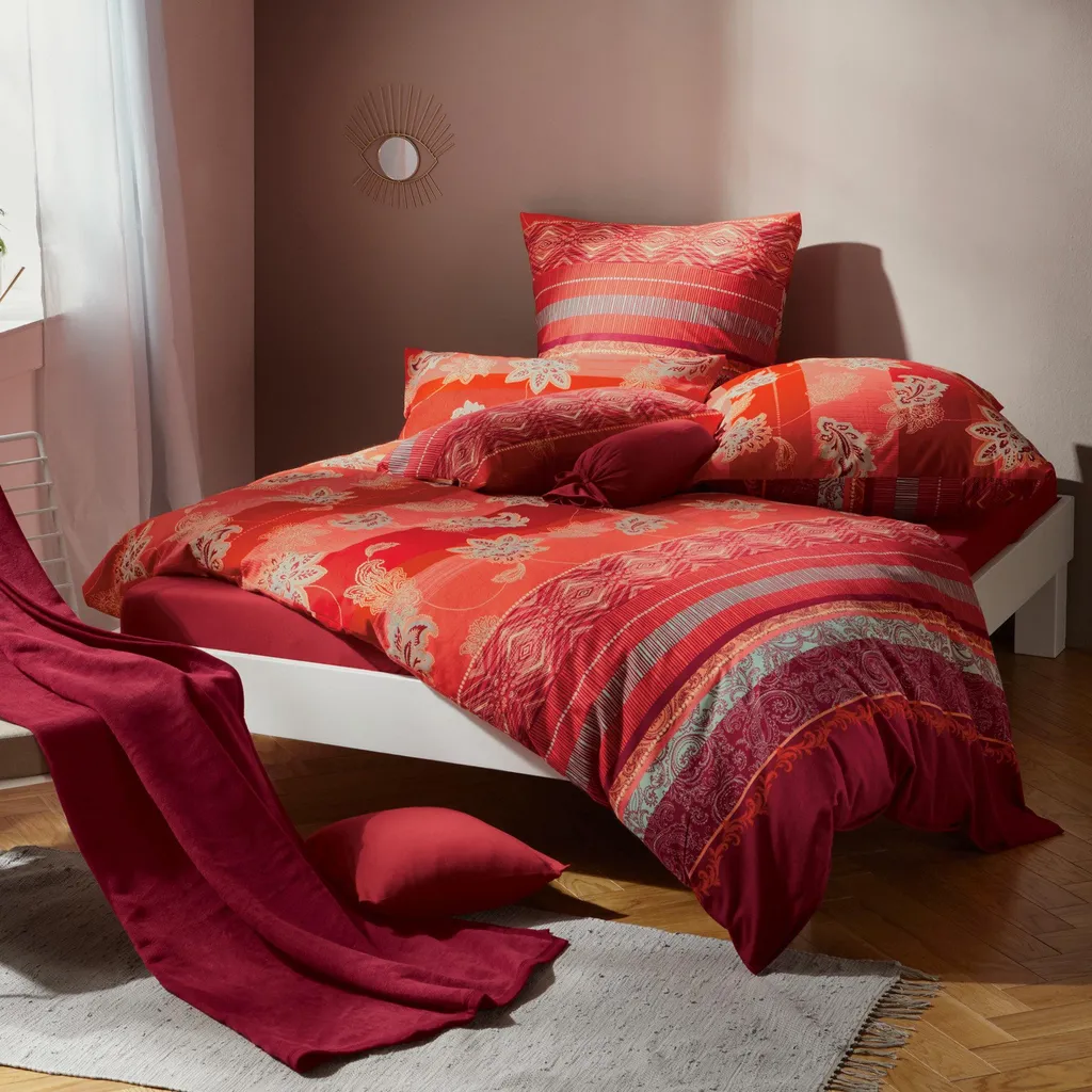 Наволочка Erwin Müller из мако-сатина. Восточные цветочные орнаменты, фантазийная кайма, вдохновляющие цвета и двусторонний дизайн создают атмосферную композицию, которая визуально делает вашу кровать центром внимания. Гребенные мерсеризованные нити создают шелковистую, бархатистую ткань, которая поражает своей элегантностью, исключительным комфортом и характерным изысканным блеском. Эта высококачественная ткань не только дышащая и приятная на ощупь, но и, благодаря своим термо- и влагорегулирующим свойствам, обеспечивает невероятно комфортный сон. Быстро и легко надевается благодаря практичной молнии.