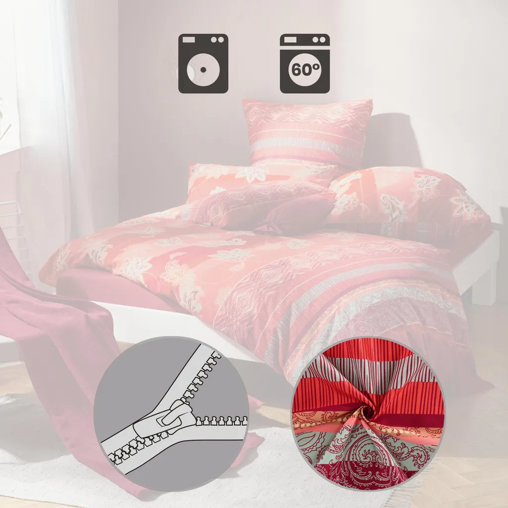Наволочка Erwin Müller из мако-сатина. Восточные цветочные орнаменты, фантазийная кайма, вдохновляющие цвета и двусторонний дизайн создают атмосферную композицию, которая визуально делает вашу кровать центром внимания. Гребенные мерсеризованные нити создают шелковистую, бархатистую ткань, которая поражает своей элегантностью, исключительным комфортом и характерным изысканным блеском. Эта высококачественная ткань не только дышащая и приятная на ощупь, но и, благодаря своим термо- и влагорегулирующим свойствам, обеспечивает невероятно комфортный сон. Быстро и легко надевается благодаря практичной молнии.