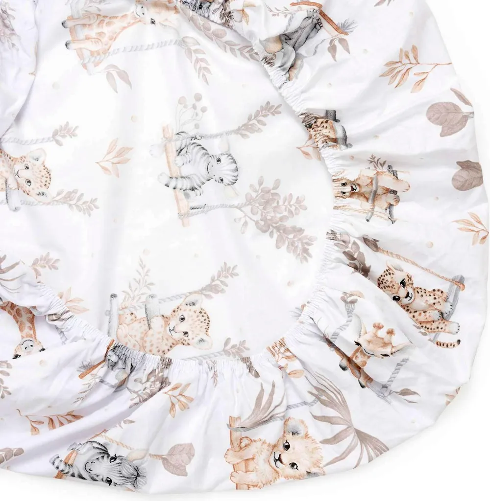 Простыня на резинке JUKKI изготовлена из 100% хлопка. Ткань мягкая на ощупь и нежная для детской кожи. Она не вызывает раздражения кожи или аллергии. Простыню на резинке можно использовать с первого дня жизни ребенка. Прочная резинка, вшитая в туннель, обеспечивает идеальную посадку на матрасе и предотвращает скольжение простыни. Ваш малыш будет спать спокойно. Простыни на резинке доступны в различных узорах и цветах, что позволит вам создать свою собственную любимую коллекцию! Простыня на резинке JUKKI идеально подходит для матраса размером 120x60 см.
