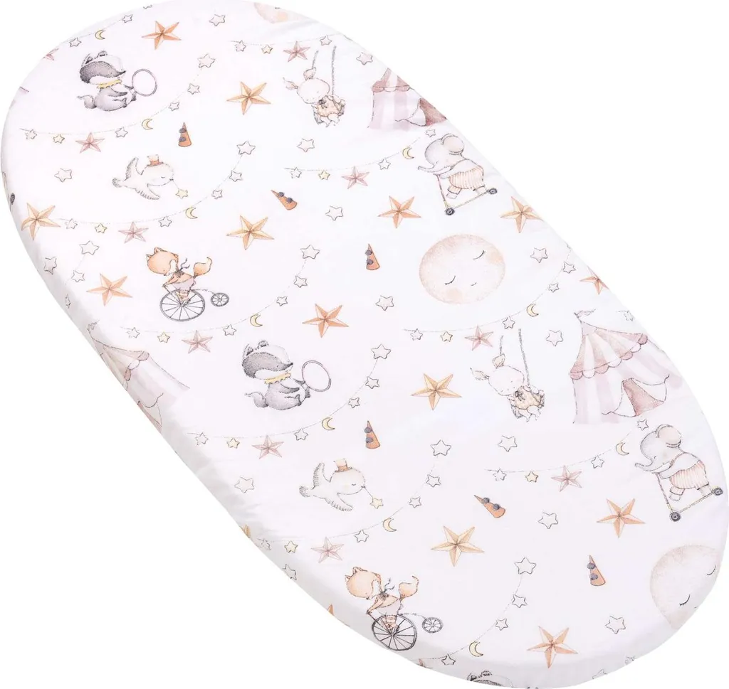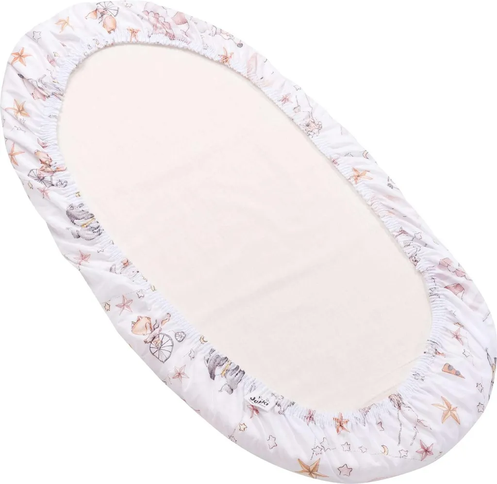 Простыня на резинке для коляски, корзины Мозес и детской кроватки 80x40 см. Размеры: 80x40 см. 100% хлопок. Хлопковая простыня JUKKI изготовлена из 100% хлопка, приятного на ощупь и не вызывающего раздражения или аллергии. Простыню можно использовать с первого дня жизни малыша. Благодаря прочной резинке, вшитой в туннель, простыня JUKKI идеально облегает матрас и не сползает. Это поможет вашему малышу спокойно спать. Доступные цвета и узоры простыней идеально дополняют наше детское постельное белье JUKKI. Вы можете свободно комбинировать комплекты постельного белья для детской кроватки, люльки или люльки вашего малыша. Хлопковая простыня JUKKI (80x40 см) идеально подходит для матраса детской коляски, корзины Мозес или другой детской кроватки. Инструкции по стирке и уходу: - Машинная стирка при 30°C - Деликатный режим, максимальная скорость отжима 800 об/мин - Гладить только хлопковые ткани при температуре до 110°C - Использовать мягкое моющее средство - Не отбеливать - Не сушить в стиральной машине. Дополнительная информация: Мы отшиваем все наши изделия вручную, поэтому заявленные размеры могут отличаться на 3 см. Обратите внимание, что цвета изделий на фотографиях могут незначительно отличаться от реальных в зависимости от вашего оборудования, особенно настроек монитора и видеокарты. Дополните комплект детского приданого с помощью Jukki. Вы можете легко и быстро дополнить комплект детского приданого или купить идеальный подарок на разные случаи жизни (крестины, день рождения, вечеринку в честь рождения ребенка). У нас также есть товары для кормления и подачи первых блюд. Здесь вы обязательно найдете все необходимое для упаковки сумки в роддом для мамы и ребенка.