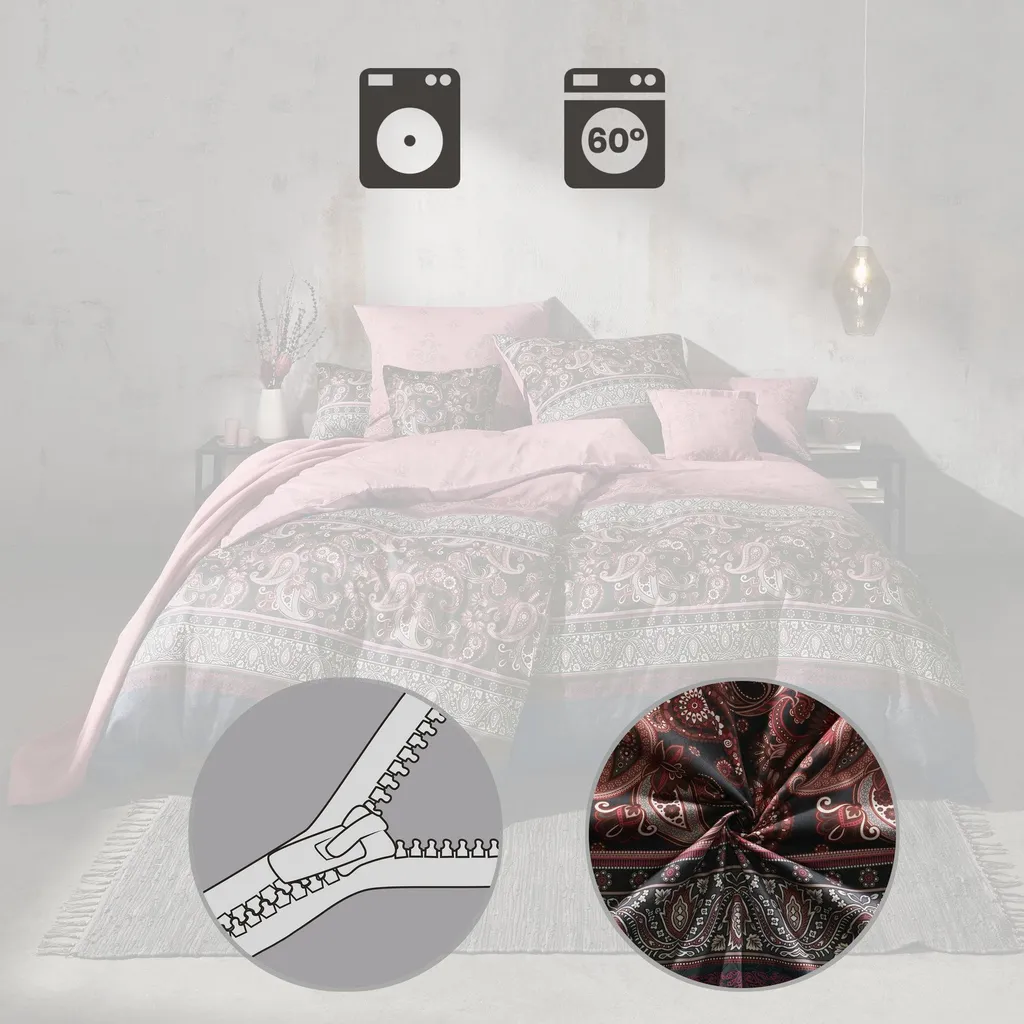 Чехол для подушки Erwin Müller из атласа Mako. Очаровательные узоры пейсли в красивых цветах создадут в вашей спальне стильную атмосферу. Чистая элегантность, которую можно увидеть и почувствовать. Двусторонний чехол для подушки со стоячим краем. Изысканный блеск подчеркивает высокое качество тонкого, бархатистого плетения. Насладитесь невероятным комфортом сна в этой высококачественной ткани из тонких гребенных и мерсеризованных нитей. Воздухопроницаемость и терморегуляция ткани обеспечивают идеальный микроклимат во время сна. Практичная застежка-молния обеспечивает легкую смену чехла.