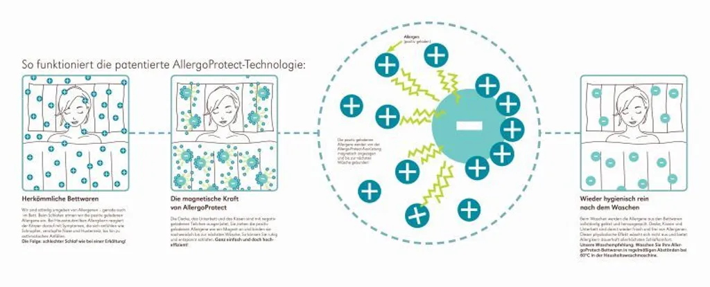 Этот гипоаллергенный наматрасник имеет чехол из тончайшего хлопка (100% хлопок) с антиаллергенной пропиткой. Наполнитель изготовлен из микрофибры AllergoFill с антиаллергенной пропиткой (100% полиэстер). Он имеет продольную стежку, повторяющую контуры тела. Можно стирать при температуре 60°C.