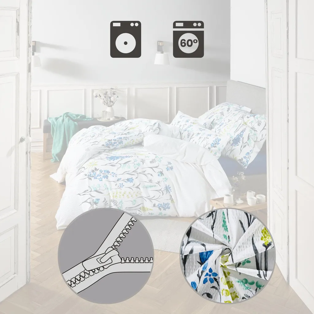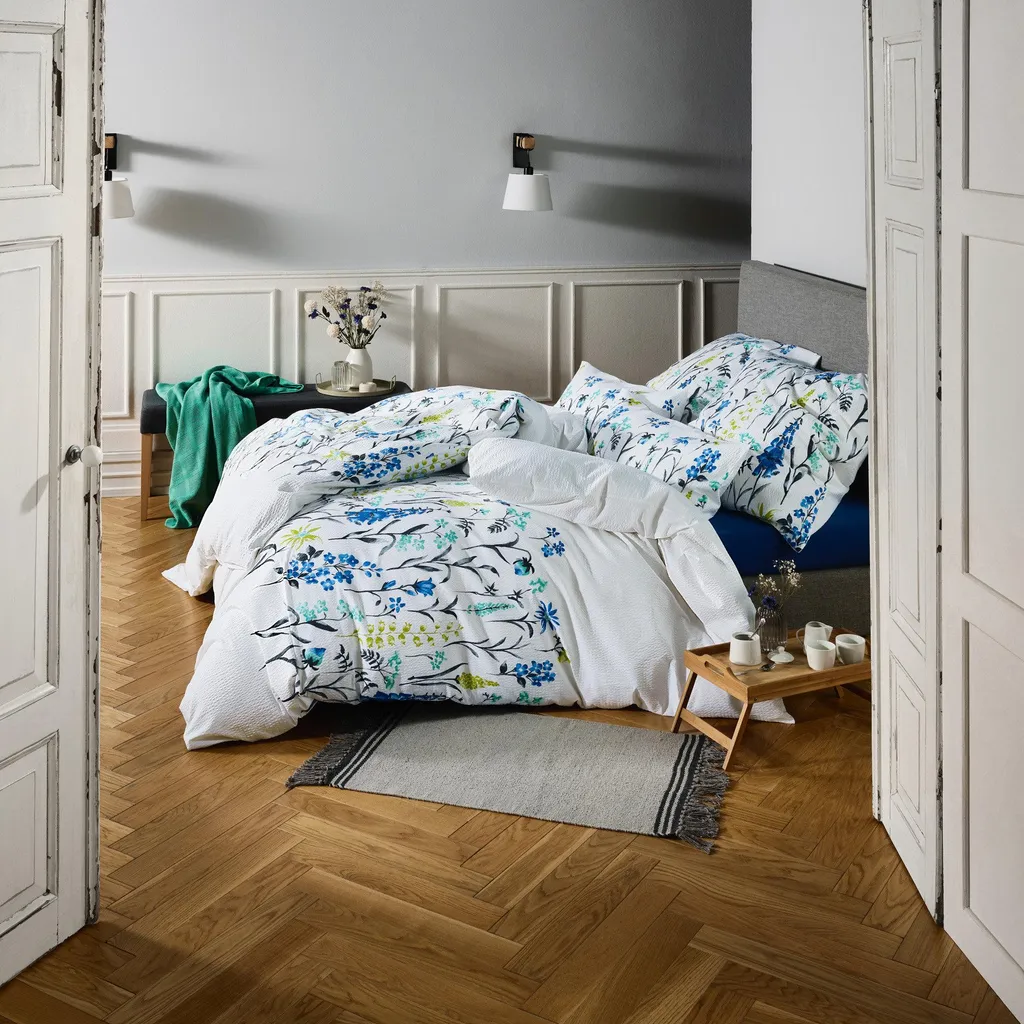 Двусторонняя наволочка Erwin Müller из сирсакера. Свежий цветочный узор добавит элегантности и преобразит вашу спальню. Эта воздушная, легкая, приятная для кожи и терморегулирующая ткань станет настоящим подарком в теплые летние вечера. Вас быстро поразит простота ухода: эта простая наволочка практически не мнется - просто постирайте, высушите и благодаря молнии быстро наденьте ее обратно на подушку.