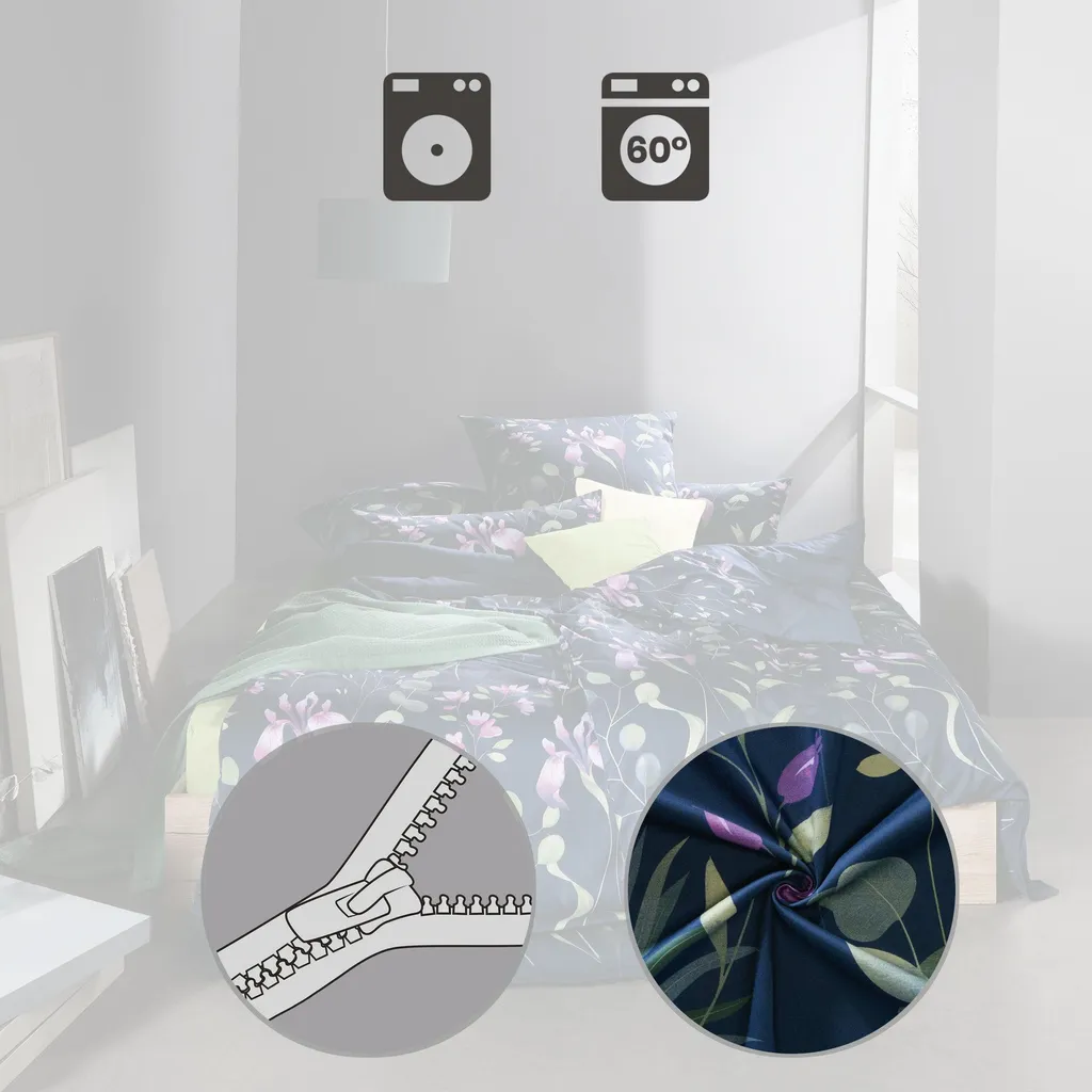 Наволочка Erwin Müller Mako из атласа. Цветочный рисунок излучает чистую элегантность. Цветы и листья создадут романтическую атмосферу в вашей спальне. Высококачественная цифровая печать обеспечит стойкую яркость цвета. Насладитесь расслабляющим и восстанавливающим комфортом сна в этой шелковистой, мягкой, плотно сотканной и слегка мерцающей ткани. Побалуйте себя чувственным ощущением этого роскошного материала. Гладкая, эластичная ткань не только дышащая, приятная для кожи и терморегулирующая, но также долговечная и простая в уходе.