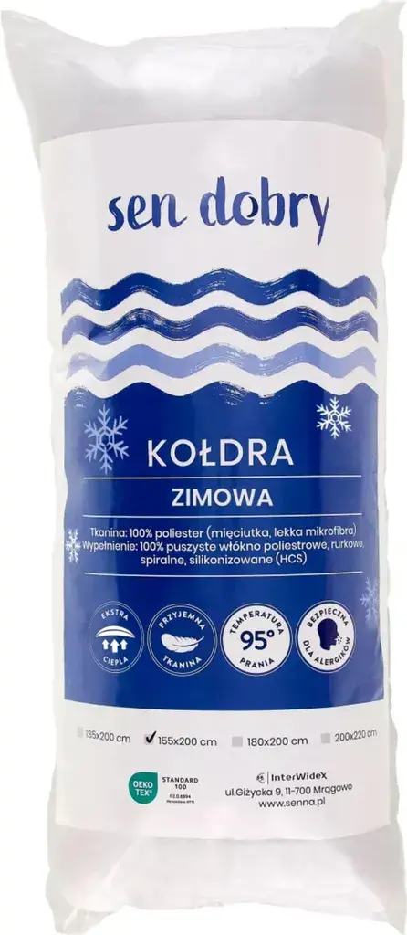 Одеяло SEN DOBRY наполнено мягким полиэфирным волокном. Идеально адаптируется к форме тела и окутывает вас во время сна.