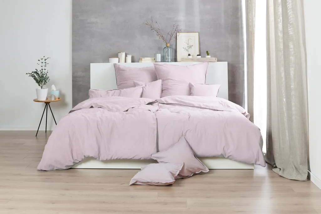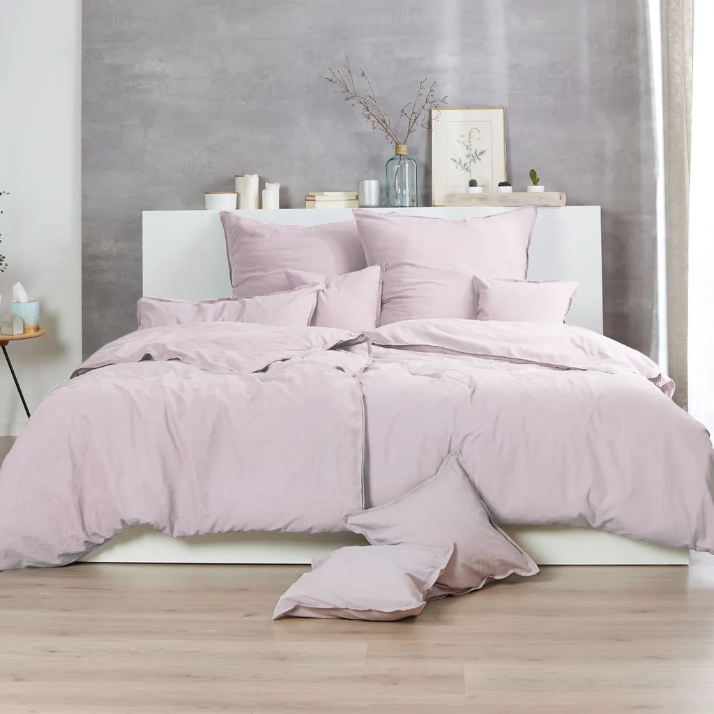 Постельное белье Hahn Cotton Stone Washed Pale Pink 155x220 см + 80x80 см