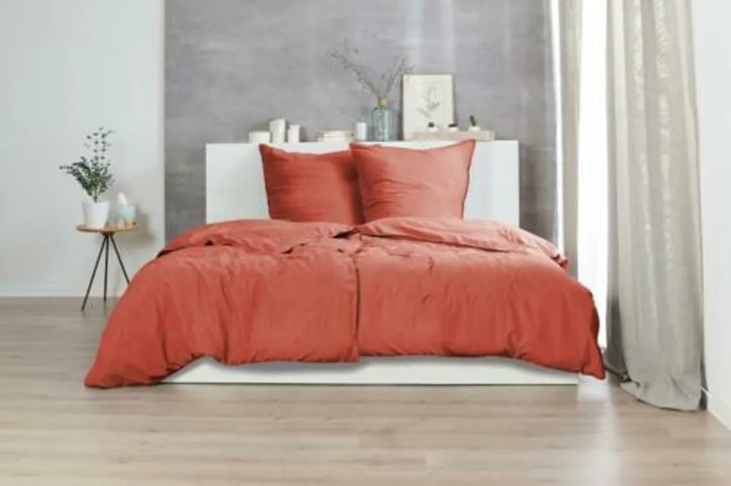 Наше постельное белье с эффектом стирки из камня изготовлено из мягкой, прочной хлопковой ткани. Простые однотонные цвета прекрасно украсят вашу кровать. Ткань приятная на ощупь, мягкая и гладкая. Небольшие различия в стирке делают каждое изделие уникальным. Каждый комплект - единственный в своем роде! Постельное белье очень приятно к телу и легко в уходе: его можно стирать в стиральной машине при температуре до 60°C и сушить в сушильной машине. Наволочка и пододеяльник, конечно же, оснащены молнией.