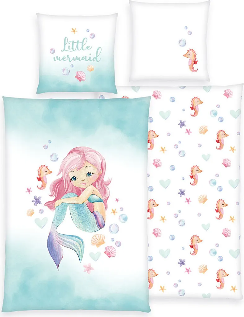 Дышащая коллекция HERDING Young Постельное белье Русалочка изготовлено из хлопка-перкаля и станет идеальным подарком для поклонников русалочки. Благодаря ярким цветам, высококачественным материалам и обработке, а также плавно работающей молнии, вы будете наслаждаться этим комплектом постельного белья долгое время.