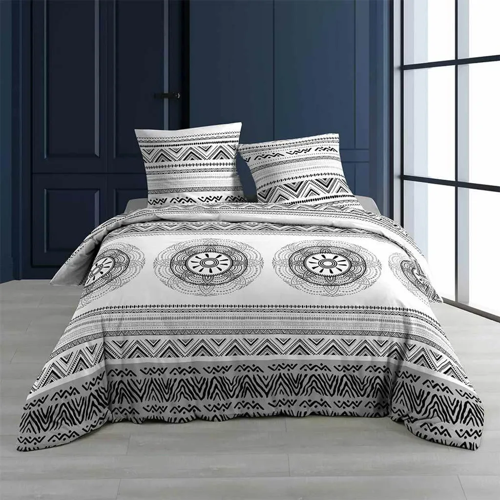 Пододеяльник Ronda изготовлен из хлопка и украшен этническим принтом. Этот веселый принт станет прекрасным дополнением к вашей спальне и прекрасно дополнит яркий интерьер. Постельное белье подходит для двуспальной кровати. При покупке постельного белья Ronda вы также получите две подходящие наволочки. *Пододеяльник на двоих*